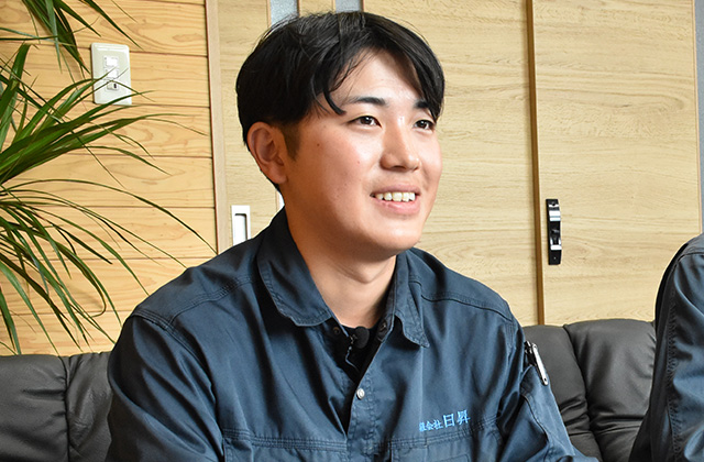 前職がサービス業だった私にとっては、日昇はまったく異なった業種ですが、人に喜ばれることや達成感を味わえる仕事にやりがいを感じる私にとっては、挑戦してみたいと思える会社であったからです。
