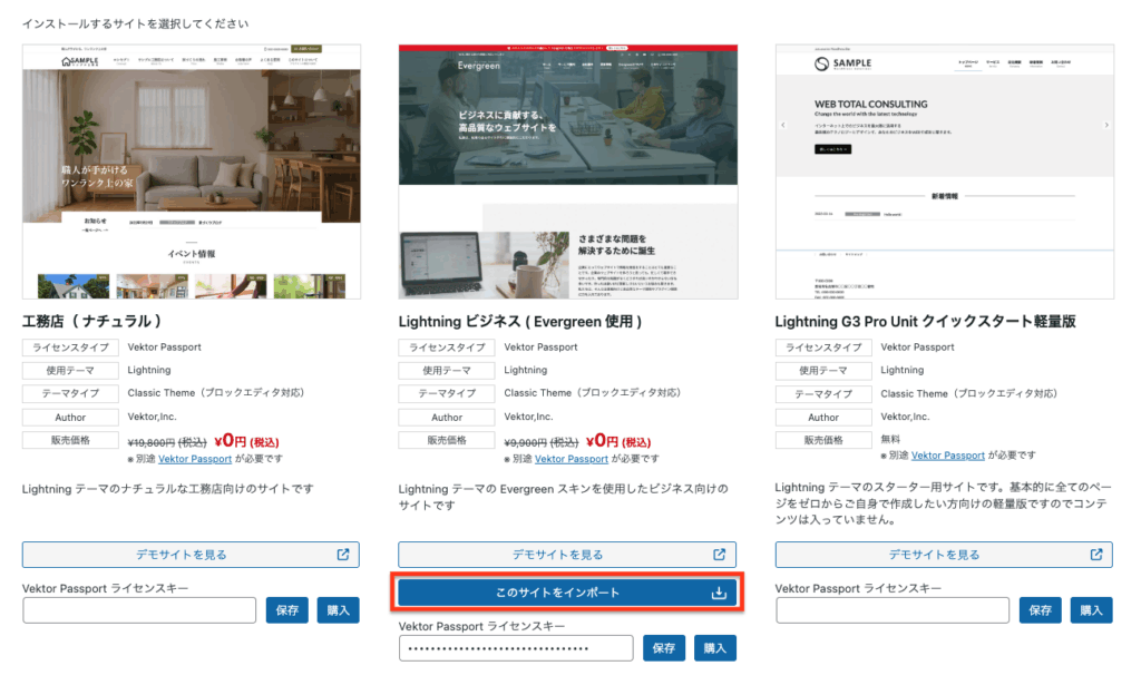 プラグイン Lightning G3 Evergreen を使ったデモサイトは VK FullSite Installer で簡単にインストールする事ができます。